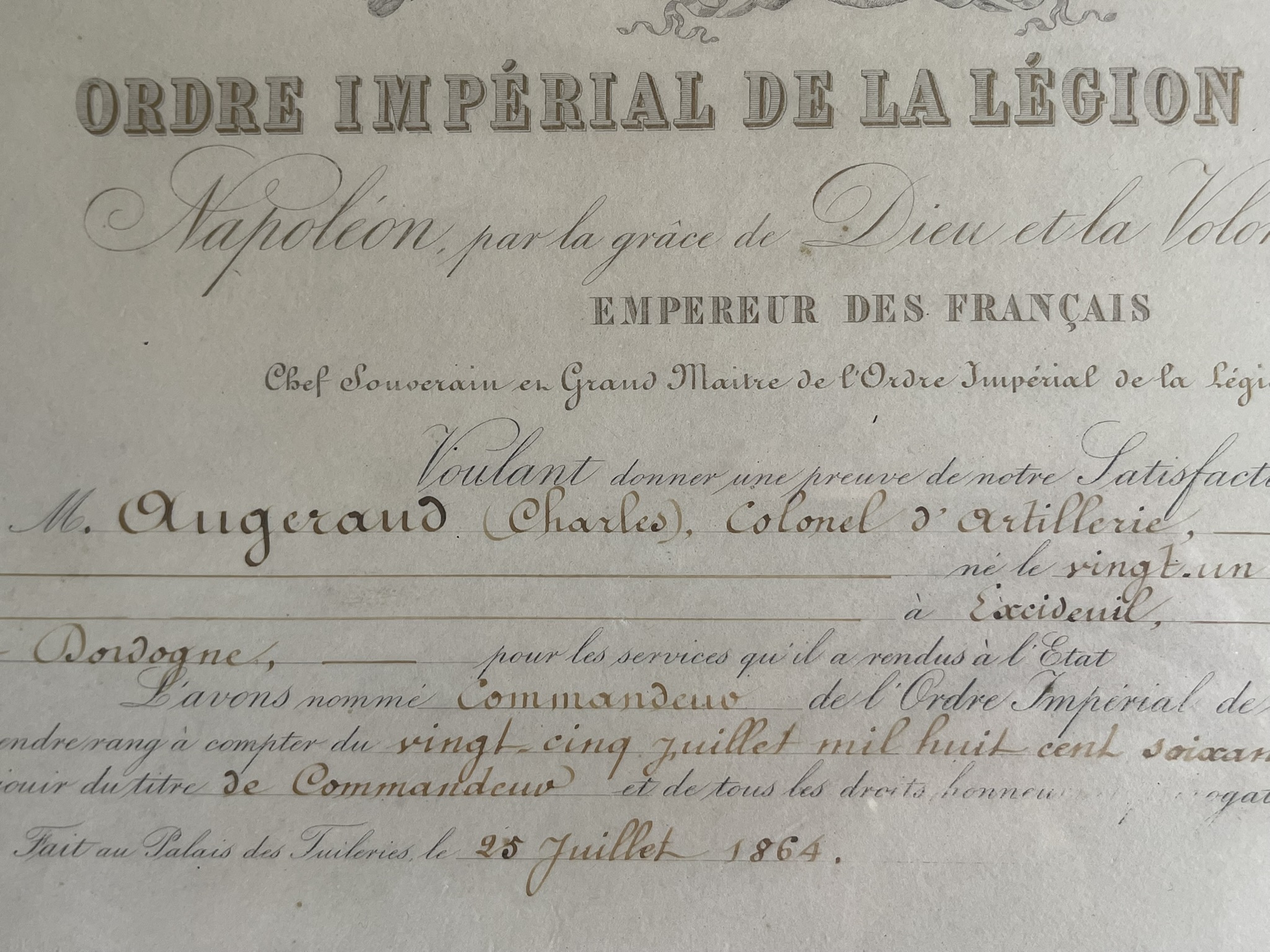 Encadré avec un chevalier de la Légion d’Honneur, attribué Charles Augeraud, colonel d’Artillerie en 1864