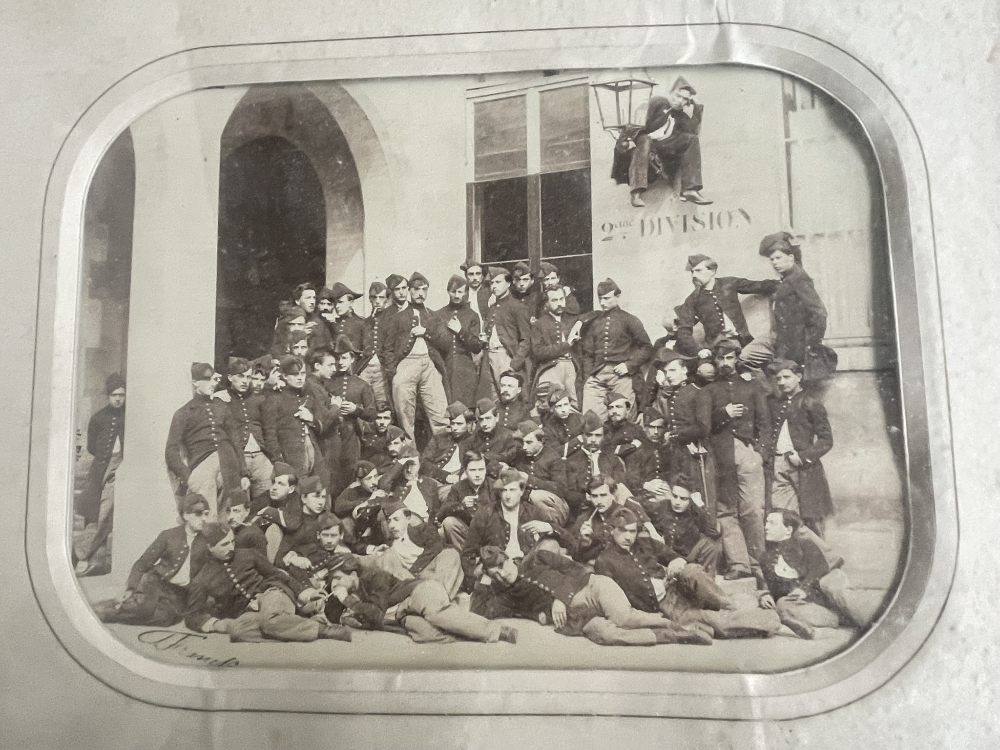 Scène posée de jeunes militaires, vers 1860.