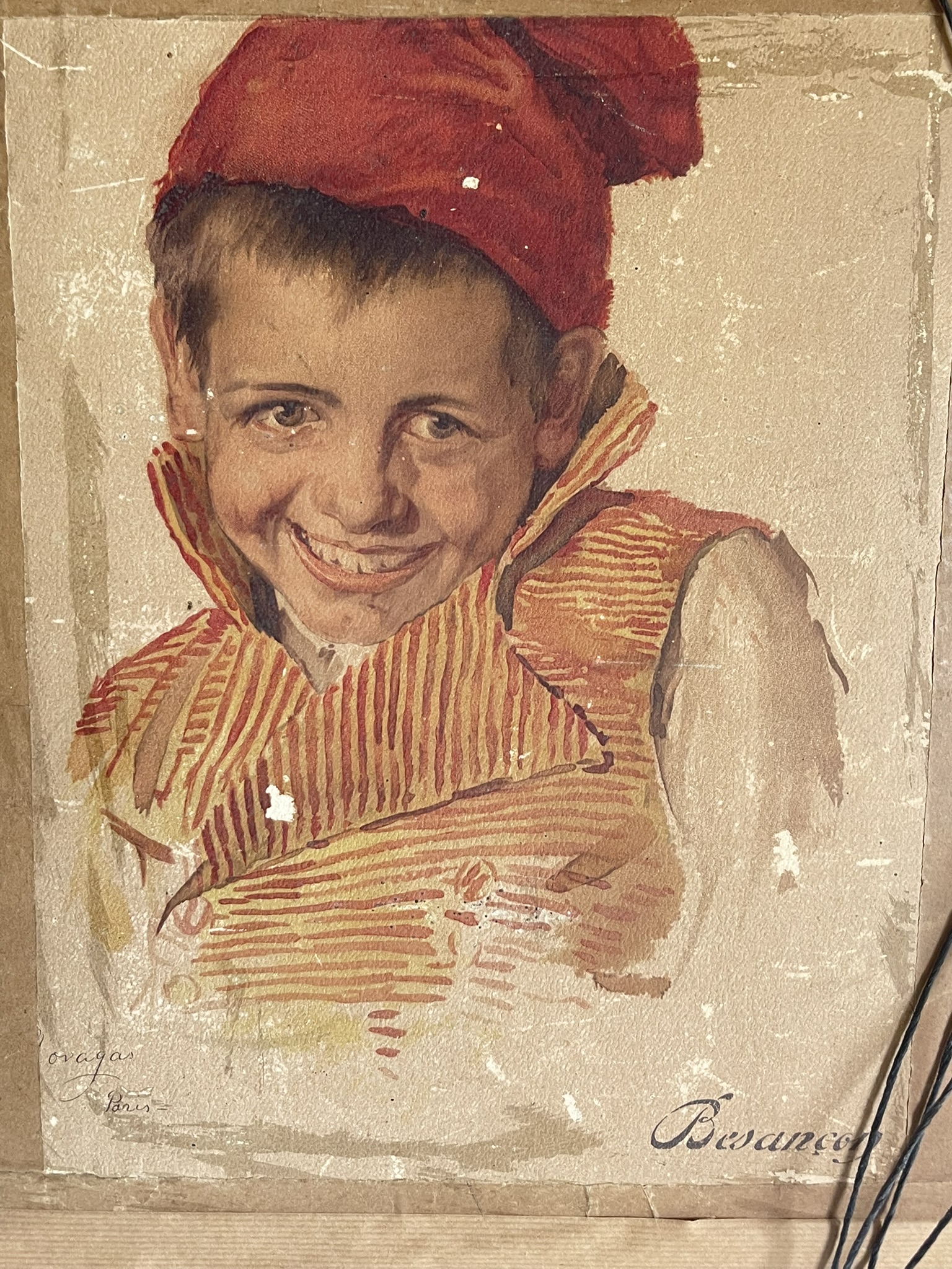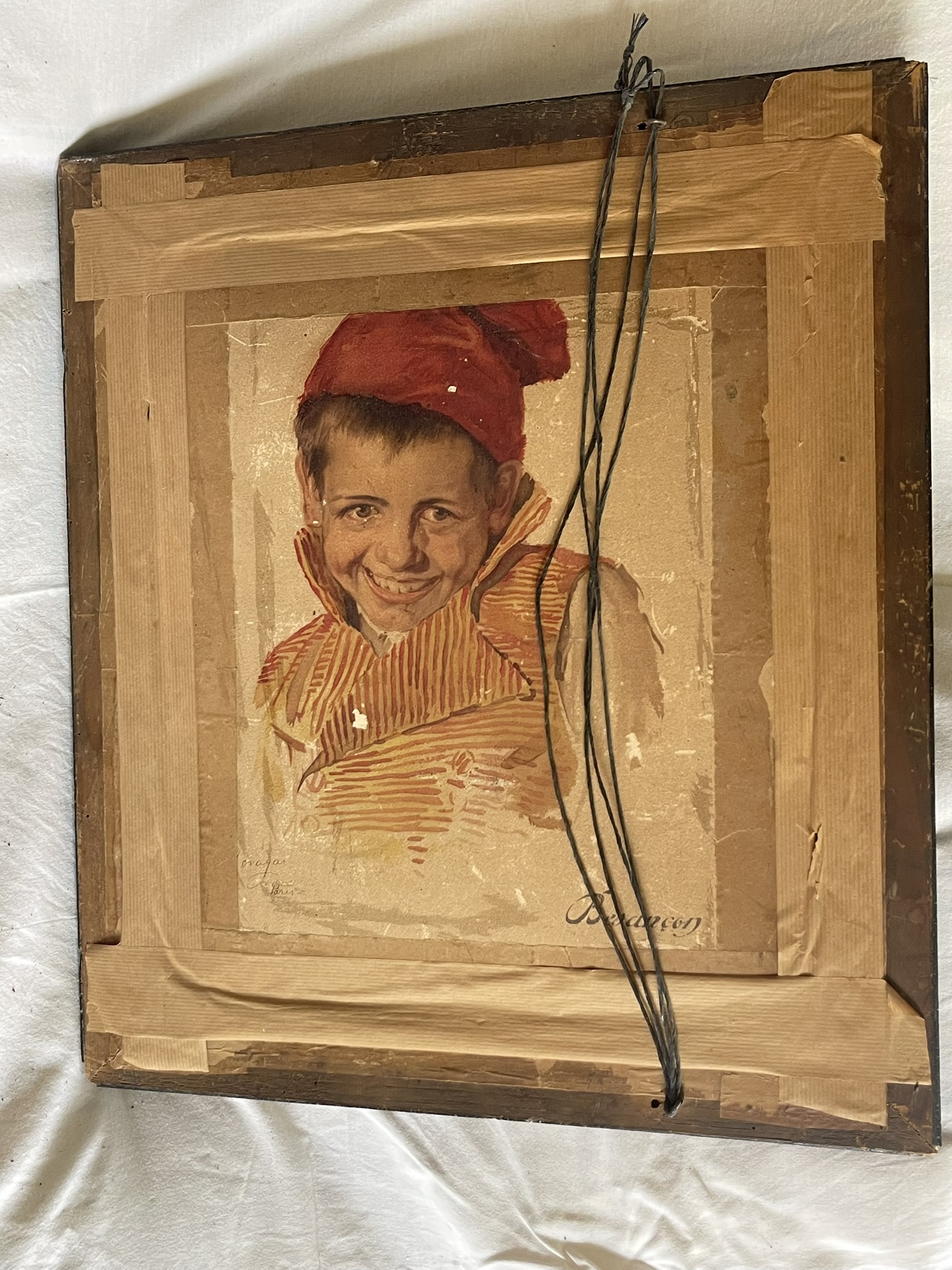 Encadré probablement d’époque ou fin 19ème; joli portrait au revers d’un jeune enfant en tenue révolutionnaire